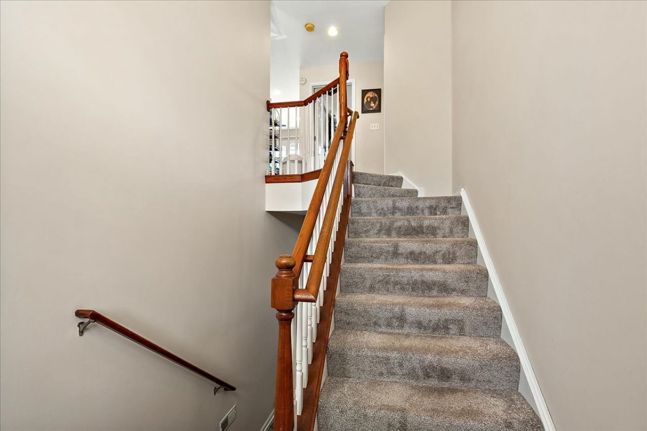 Welcome to this well-maintained 3-bedroom, 2-bath condo in the desirable Rollingwood Colony! Located in a quiet neighborhood, this home features cathedral ceilings and an open-concept kitchen, dining, and living area, perfect for everyday living and entertaining. The eat-in kitchen offers a breakfast bar and easy access to a spacious patio. The primary suite includes a large walk-in closet and a private bath with two sinks, a separate shower and soaking tub. Additional highlights include in-unit laundry, first-floor storage, and a 2-car garage. Pet-friendly with some restrictions and conveniently located just minutes from I-88, schools, shopping, Orchard Valley Golf Course, and medical facilities-this home offers comfort and convenience all in one. Property is being sold as-is.