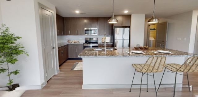 Come see one of Schaumburg's newest luxury apartment & townhome communities! Urban style living in the heart of Schaumburg. This one bed/one bath with den unit features high end amenities including stainless steel appliances, granite countertops, in-unit laundry and walk-in closets. Spend your day lounging by the heated outdoor pool or barbecue on the gas grills. Relax by the outdoor firepit or enjoy a game of billiards in the game lounge. Clubhouse features a kitchen, bar, lounge area & big screen TVs. Exercise on your schedule at the 24hr fitness ctr with on-demand exercise & yoga classes. Pets will enjoy the bark park & dog run. Parking is free and garages/attached heated garages avail. Award winning School District 15 and 211 Fremd High School. Elevator building. ADA/handicap accessible units available. Conveniently located near highways, Metra, Woodfield, Top Golf, restaurants & walking/biking trails. Short term leases avail. Pricing can vary based on lease term & move-in date, subject to change without notice.
